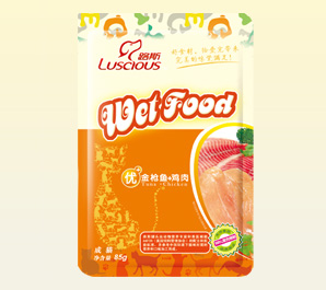 產(chǎn)品名稱:金槍魚+雞肉 規(guī)格型號:85g 每箱數(shù)量:120袋 公司網(wǎng)址:www.luspet.com